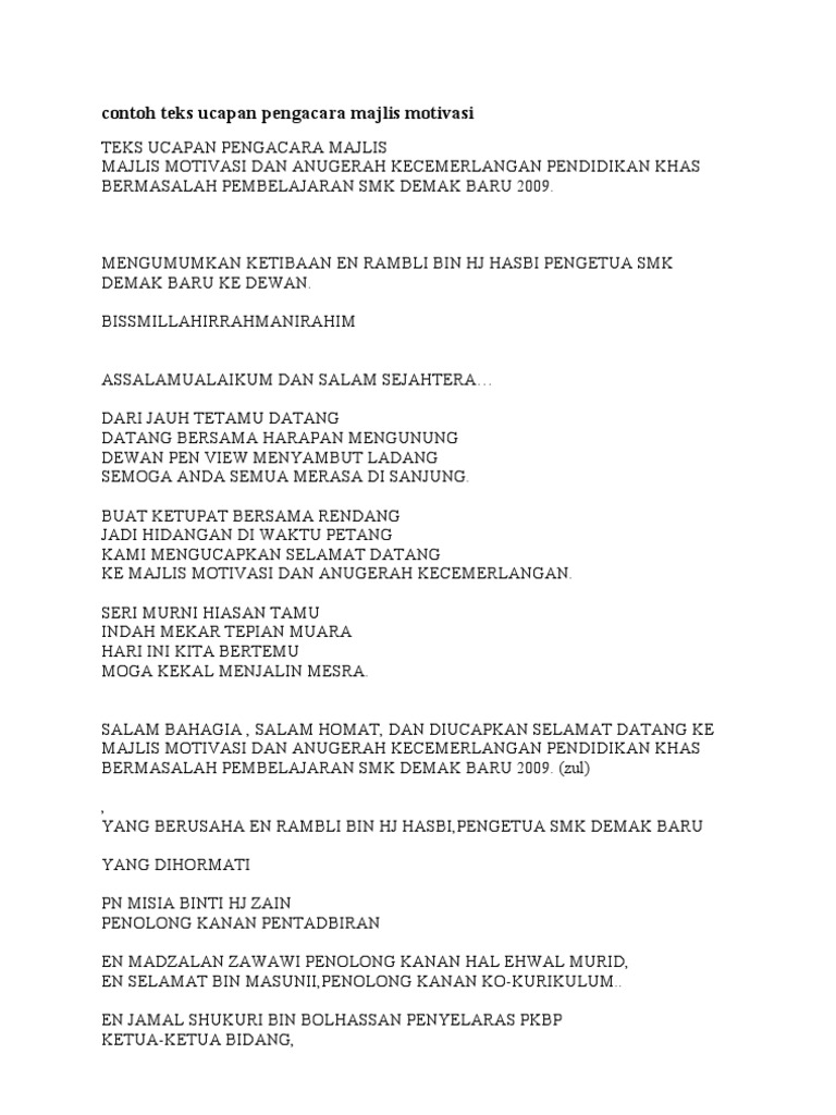 Contoh Teks Ucapan Pengacara Majlis Motivasi Pdf